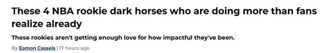 勇士队56号签淘到宝!在新赛季开打两周之际,美媒《fansided》评选出开季4大黑马新秀,其中杨瀚森交易筹码入选。
